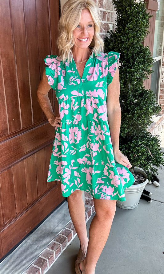 🔥Summer Hot Sale 49% OFF🔥Plus Size Ruffle Sleeve V-Neck Printed Dress