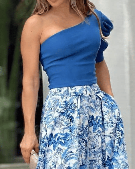 49% OFF🔥HOT SALE - One-shoulder Puff-sleeve Printed Trousers