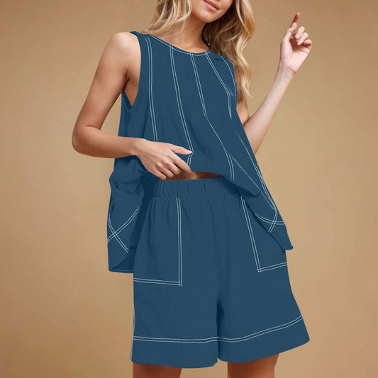 🏖️Summer Hot Sale 49% OFF🌼Women's Round-Neck Tank Top & High-Waisted Shorts Set
