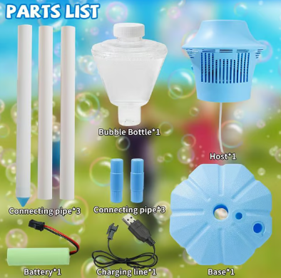 •Adjustable Height Stand: The bubble maker comes with an adjustable stand, making it suitable for children of all ages. Easily adjust the height to ensure every child, big or small, can enjoy the bubble-blasting fun.