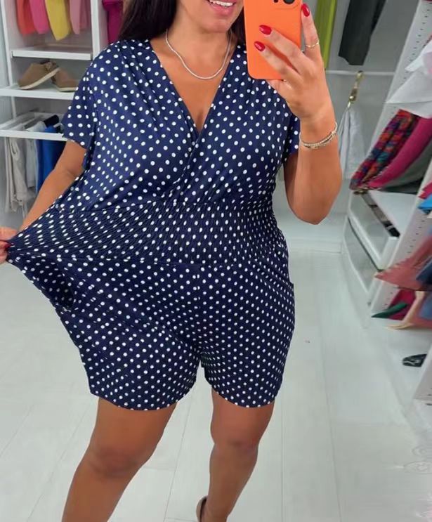 49% OFF TODAY💥Polka Dot V-Neck One-piece Shorts Jumpsuit