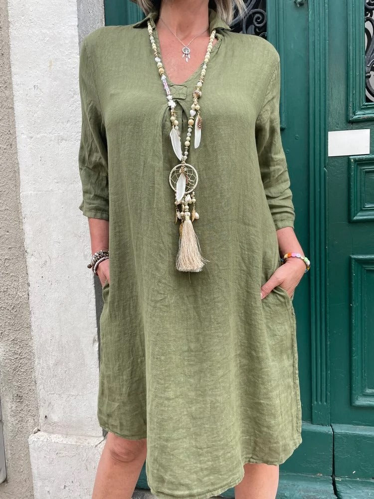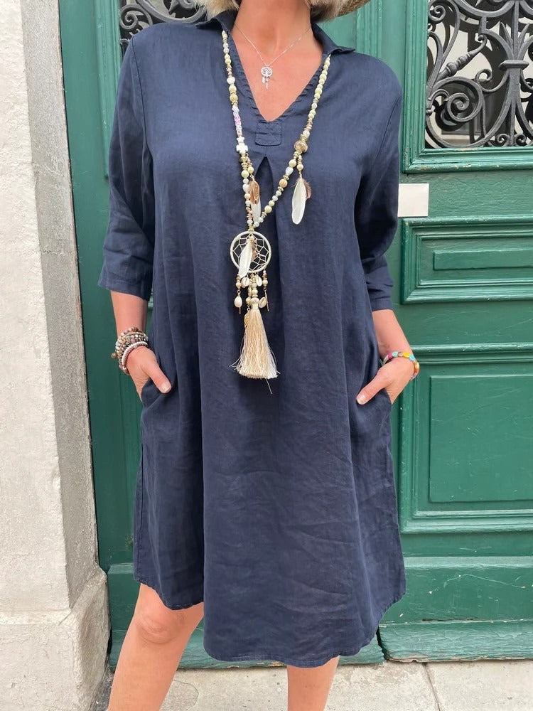 49% OFF🌸V-NECK THREE-QUARTER SLEEVE COTTON AND LINEN DRESS