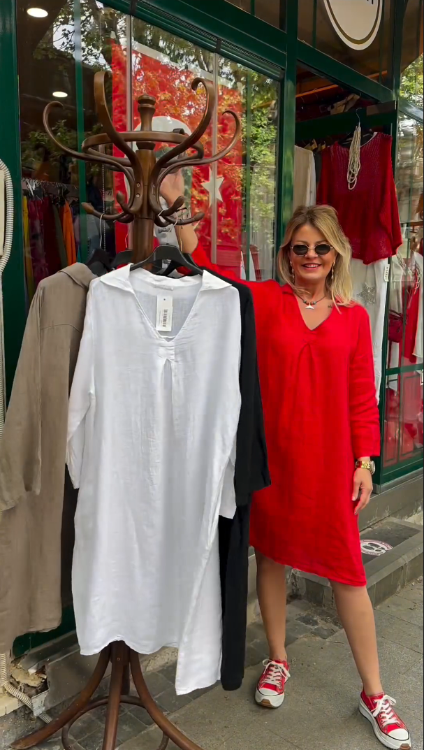 Indulge in effortless elegance with our V-NECK THREE-QUARTER SLEEVE COTTON AND LINEN DRESS, the epitome of laid-back sophistication. Crafted from premium-quality materials, this dress is designed to keep you cool and stylish during the warm summer months.