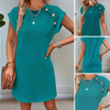 SOLID COLOR DESIGN WITH TRIM DETAIL: This dress features a clean, solid-color finish that eliminates pattern distractions and enhances versatility. A refined touch comes in the form of three decorative buttons placed on the left shoulder — adding visual interest while maintaining a minimalist aesthetic.