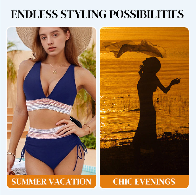 This bikini set is the ideal swimwear for beach vacations, pool parties, and water sports activities. It is designed to make you feel confident and stylish whether you're lounging, swimming, or enjoying a resort getaway.