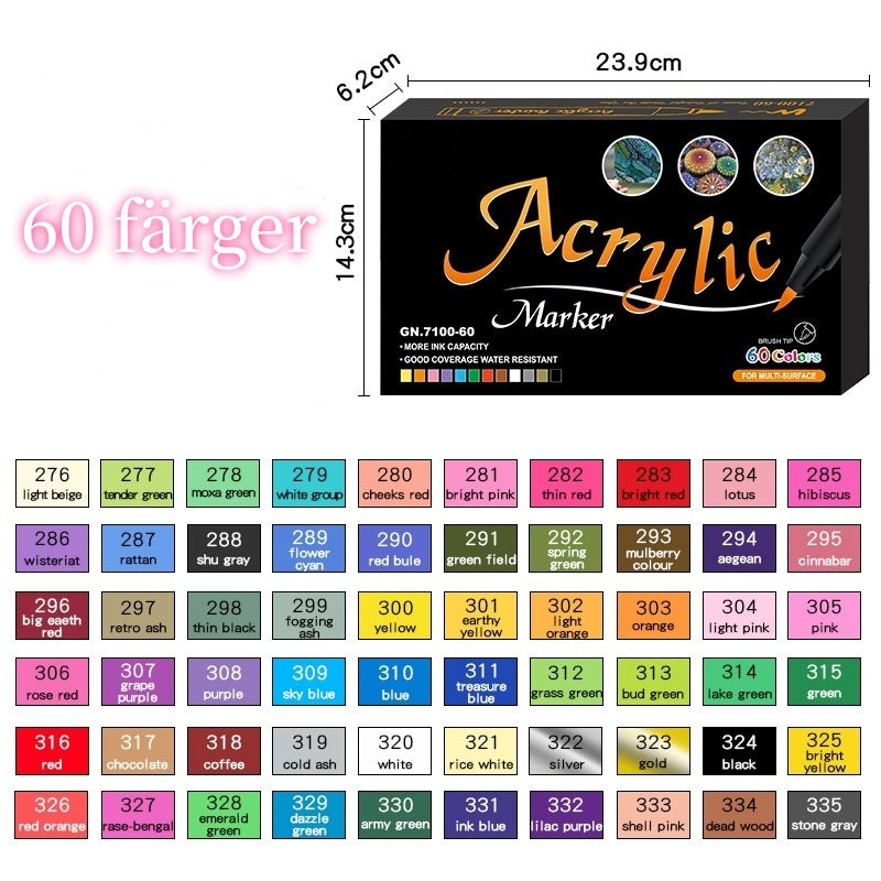 Package Includes: 12/24/36/48/60 * Acrylic Paint Pens