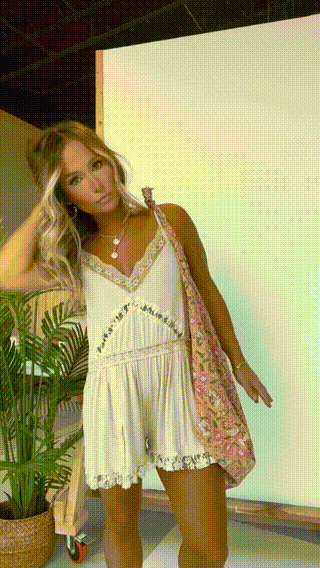 Stay on trend this season in our V-Neck Lace Trim Detailing Romper. We especially love the lace fabric and think this piece will be a new favorite in your closet!