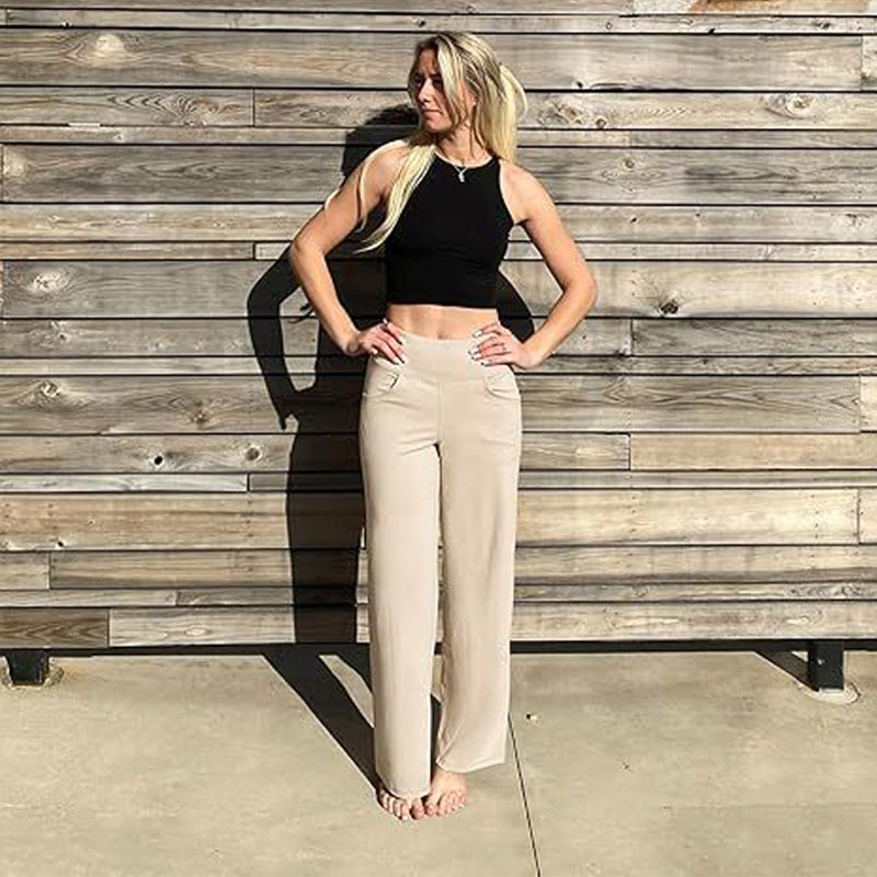 Women's Wide-Leg Stretch Yoga Lounge Pants with Pockets